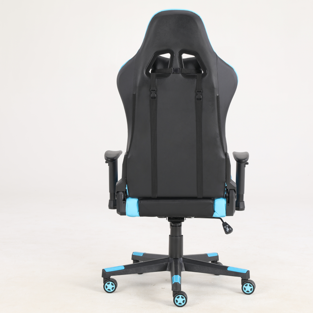 1. Ergonomic design for all-day comfort 2. Stylish black and blue color scheme 3. Adjustable height and reclining angle 4. Durable materials for long-lasting use 5. Smooth casters for easy movement