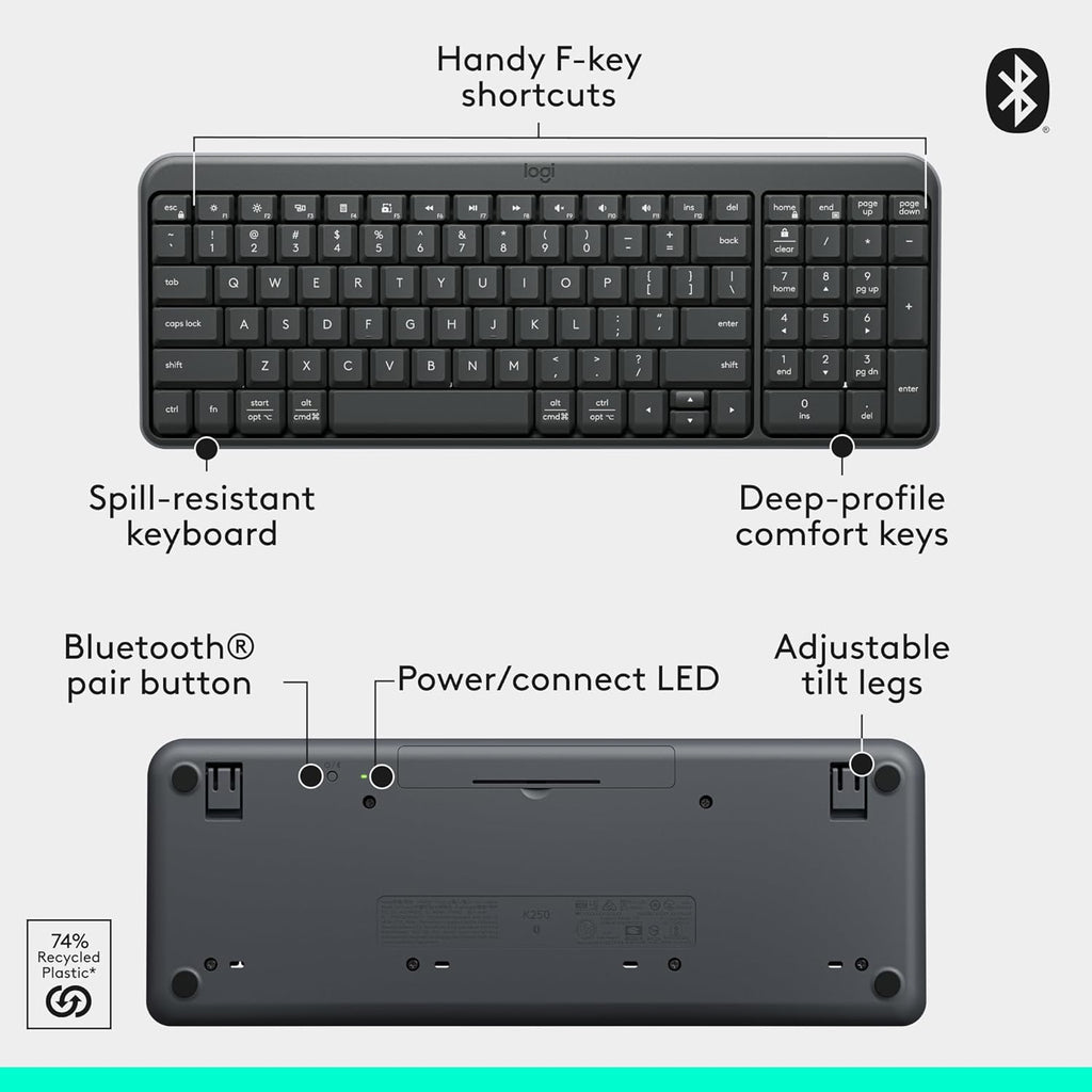 - Durable and reliable: Built for quality, K250 offers long-lasting keys, a spill-resistant design (2)